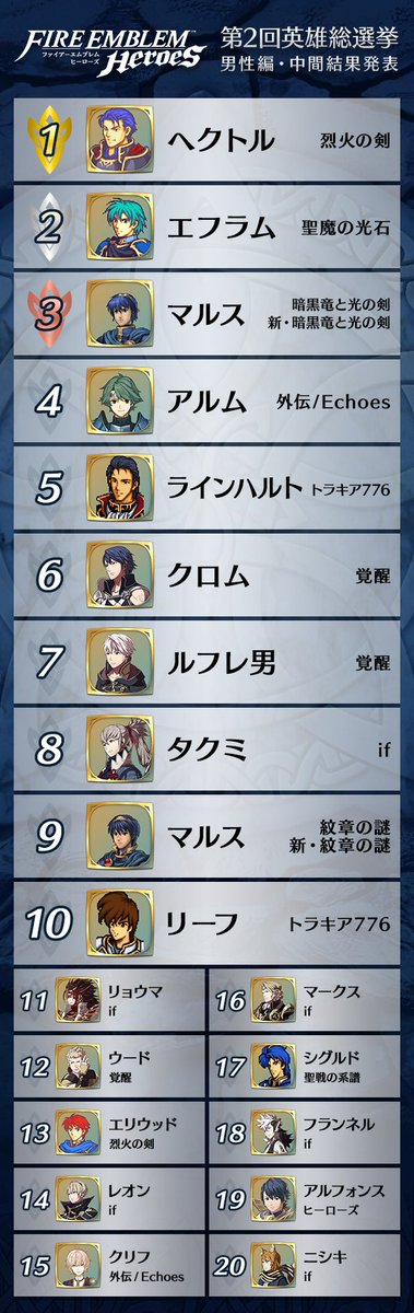Ce concours ne doit évidemment pas être prit comme un réel concours de popularité Fire emblem, mais bien celui des joueurs de FE Heroes.