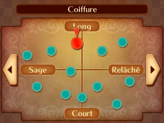 Vous avez un choix de 12 coiffures allant de Relâché à Sage ainsi que de Elegant à Simple(pour un Homme) ou Long à Court(pour une Femme).
